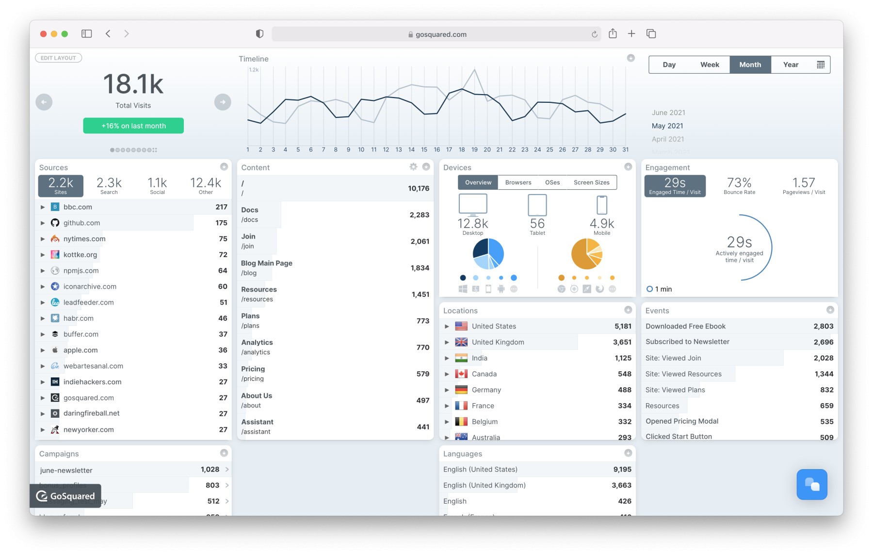 GoSquared is a comprehensive analytics tool that provides real-time data and a range of features for website owners. GoSquared's interface is intuitive, and it offers a range of features, including real-time analytics, marketing automation, and customer messaging tools. GoSquared also offers integration with other tools, such as Slack and Salesforce, making it a great choice for businesses that use multiple tools for marketing and customer service.