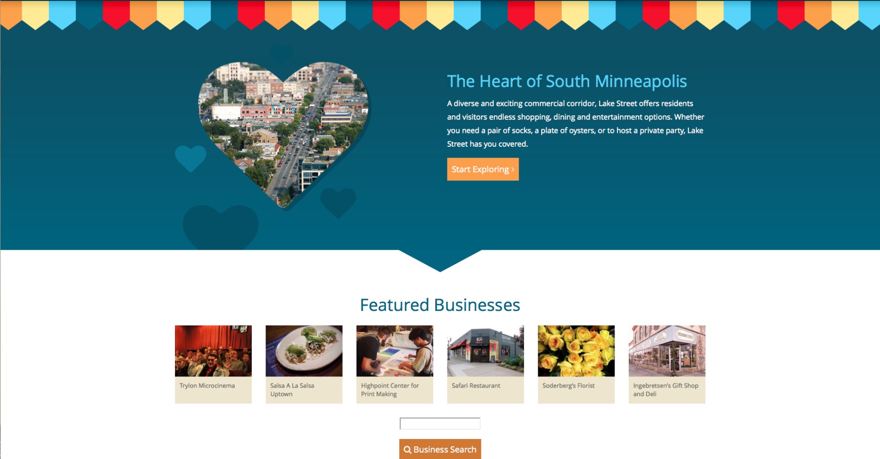 The Lake Street Council totally revamped their website in 2015. They wanted a strong image presence with more pictures and fewer words. They also wanted accessibility to changing photos more frequently, allowing the site to be more adaptable and versatile as the neighborhood changes and grows.
