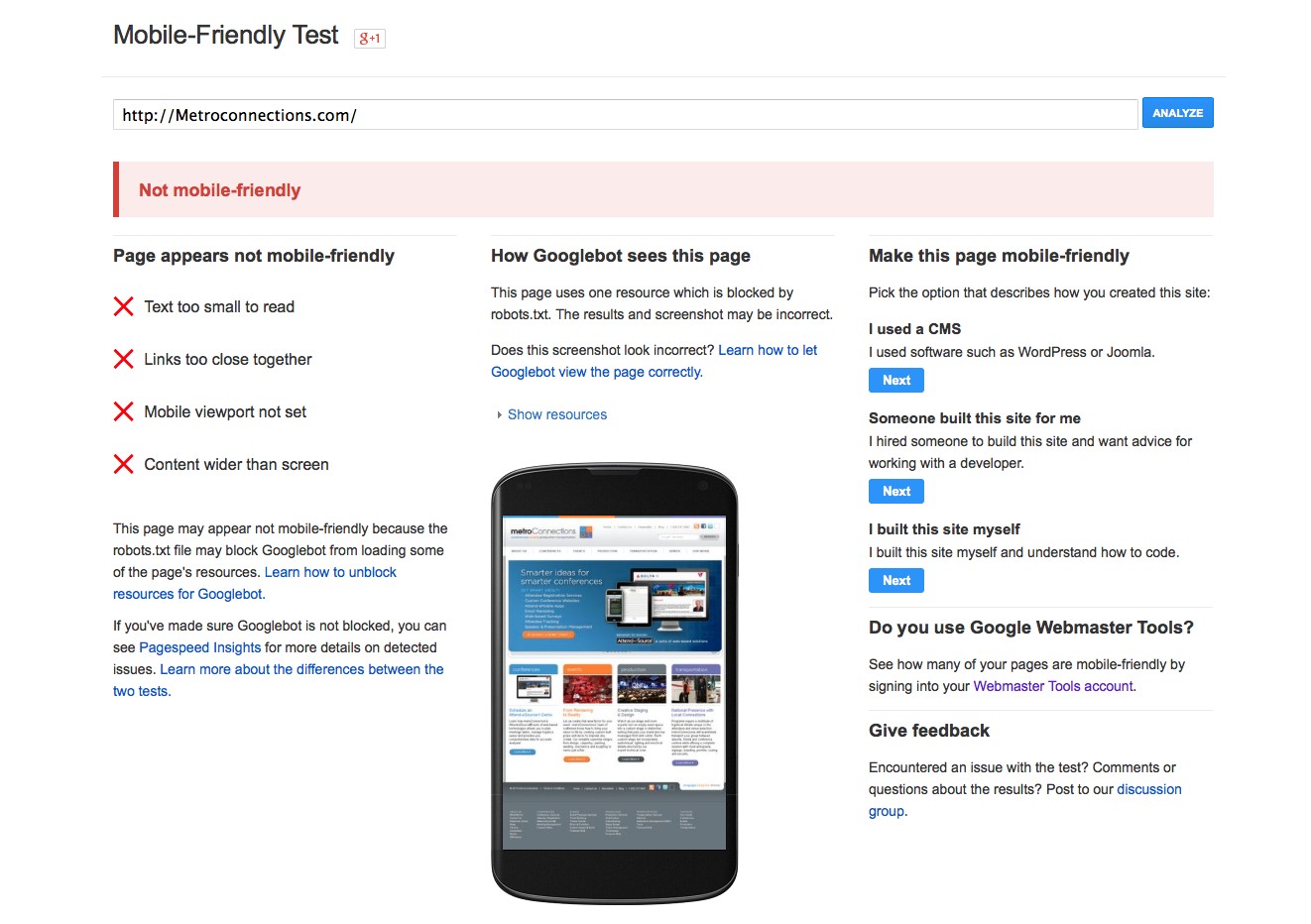 We are currently in the process of updating the Metro Connections website to make it more mobile friendly. Here's their current assessment: