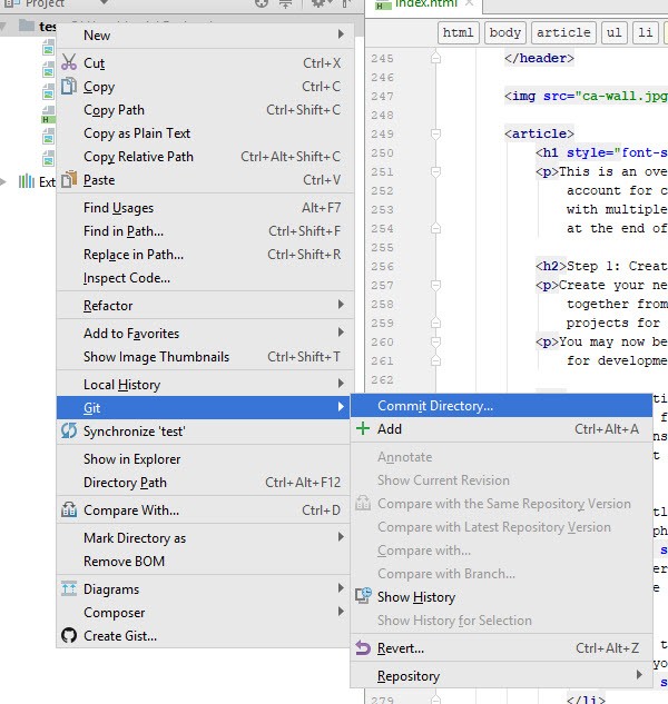 When you are ready for a new commit to the repository, you can right-click the top level of your prject, right-click and select Git » Commit Directory like we had done at the start of the project.