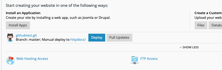 Plesk creates the domain, and readies the domain for future usage with Github.
