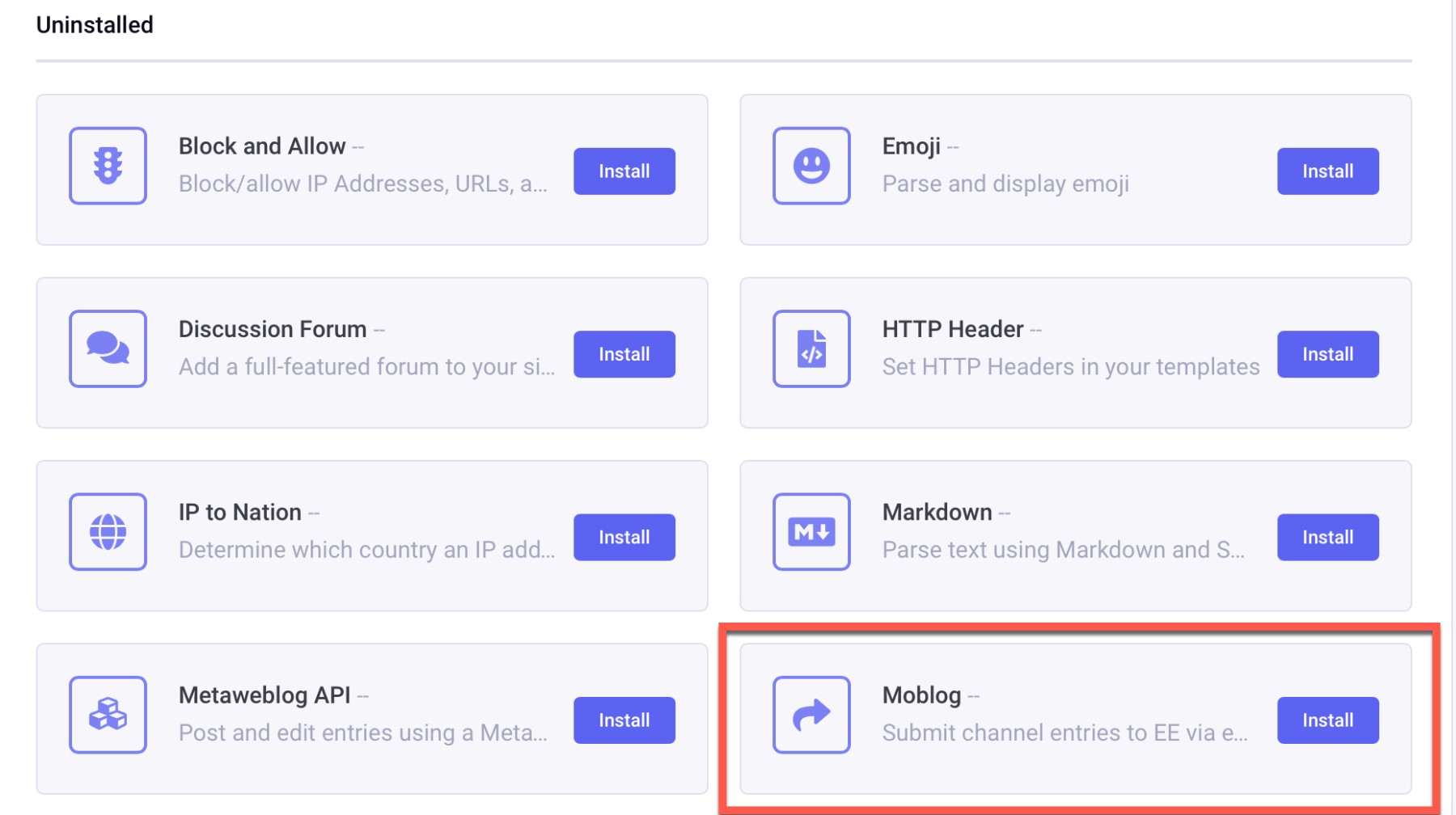 - Install the first-party Moblog module