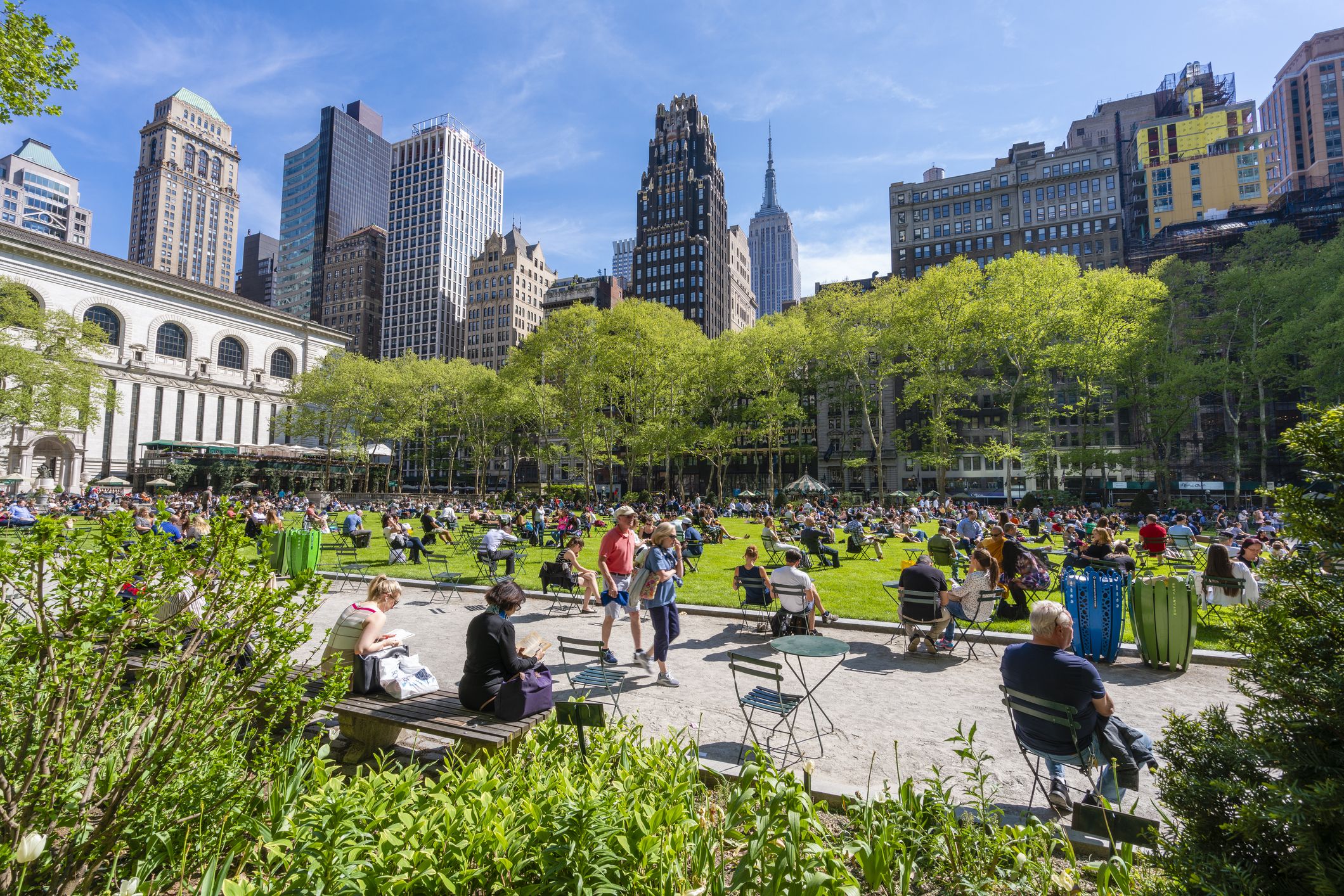 Instantly familiar to any New Yorker, Bryant Park is one of the world’s busiest public spaces, featuring greenspace for gathering, free events, cultural programming, gardens, fountains, and more. It is located near many famous landmarks such as the New York Public Library, Empire State Building, Times Square, and Rockefeller Center.